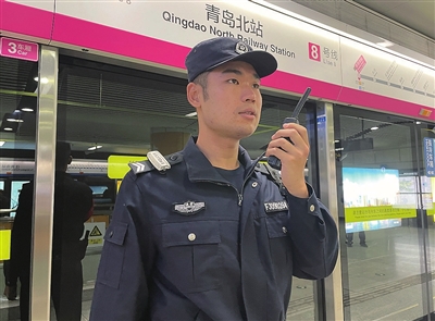 巡逻是地铁公安人员每天最重要的工作之一,青岛北站地铁站客流量很大,提前巡视到位,防患于未然。站厅、站台、安检口、出站口等地,都需要来回巡逻。每天巡逻的路线都是一样的,但每天遇到的各类警情却又是不一样的。“要时刻保持一种‘新鲜感’,不能因为在这里工作久了,对这里熟悉而放松警惕。”隋超认真地说道。在地铁站内巡逻、出警处理突发事件等,隋超一天工作下来,走上三万多步很正常。