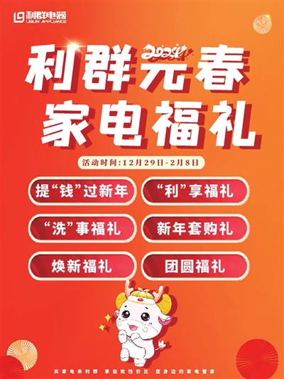 这个新年,要在家里轻松享受生活的乐趣,利群电器旨在让消费者享受优惠价格的同时,依然保证卓越的产品品质与优越的售后服务。