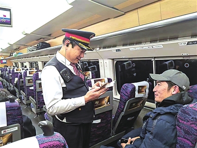 “先生,青岛北至潍坊车站票价51元,请问您怎么支付?”“我只有现金,麻烦了。”“不麻烦,100元找零49元。”马栋用手在人民币上摩挲,用随身携带的紫光手电查验头像、金箔线后,将零钱找给旅客,整个过程仅用时十几秒。