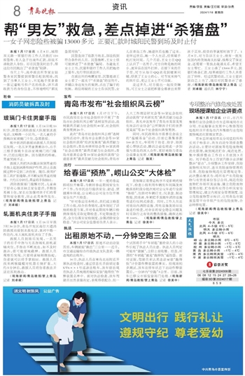 | 《青岛日报》(电子版)的一切内容(包括但不限于文字、图片、PDF、图表、标志、标识、商标、版面设计、专栏目录与名称、内容分类标准以及为读者提供的任何信息)仅供青岛日报社读者阅读、学习研究使用,未经青岛日报社及相关权利人书面授权,任何单位及个人不得将《青岛日报》(电子版)所登载、发布的内容用于商业性目的,包括但不限于转载、复制、发行、制作光盘、数据库、触摸展示等行为方式,或将之在非本站所属的服务器上作镜像。否则,青岛日报社将采取包括但不限于网上公示、向有关部门举报、诉讼等一切合法手段,追究侵权者的法律责任。 |