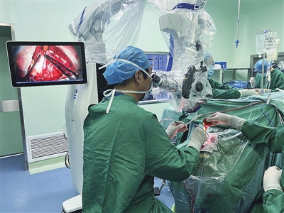 前不久,何女士的右侧肢体出现麻木无力。有了上次的求医经验,她意识到可能是烟雾病在作怪。经过当地医院检查,左侧脑血管再起“迷雾”。于是,何女士及家属马上想到了靳峰教授。得知靳峰教授作为山东省级临床重点专科负责人被引进到青岛市中心医院工作,现任学科带头人、神经外二科负责人,便立即从枣庄来到青岛就医。经检查,上一次的手术治疗让右侧大脑供血得以明显改善,但这一次左侧大脑血管的闭塞程度加重,面临着很大的手术风险。摆在靳峰教授团队面前的难关还包括何女士生理机能的下降,患有高血压、糖尿病等基础疾病;左侧大脑组织已经出现了萎缩,对缺血缺氧的耐受性明显下降;术中需要在萎缩的脑组织中“穿针引线”缝合血管,其难度可想而知。对此,靳峰教授做足了术前准备工作,第二次手术同样非常成功。