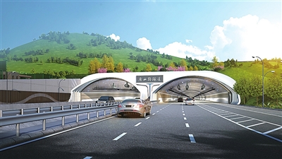 紧邻唐山路项目C4标段,便是亚洲最大跨度交通隧道——唐山路隧道施工现场。洞口一侧的山坡上,工作人员正在做着支护加固工作。目前,隧道右洞已开始入洞作业。为保障作业期间的混凝土浇筑,施工人员在洞口挂上了“棉帘”。据了解,唐山路隧道作为唐山路项目关键控制性节点工程,全长1.5公里,主线双洞8车道设计,集超大断面、超小净距为一体。最大断面开挖净跨度达32米,高19.6米,相当于六七层楼房的高度,是目前亚洲最大跨度交通隧道。