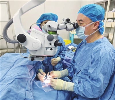 近日,青大附院眼科主任医师梁涛团队成功实施IZHV手术(周边虹膜切除口相应悬韧带及玻璃体切除术),为做过两次手术的疑难患者拨云见日,解除了患者的视力障碍。