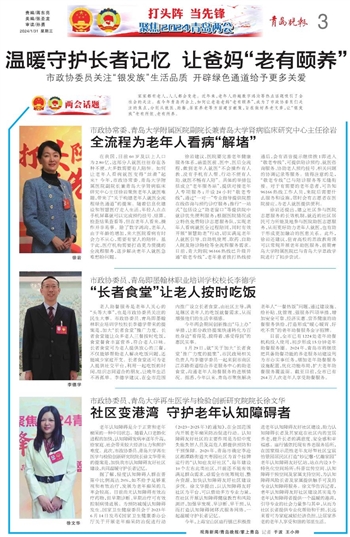 家家都有老人,人人都会变老。近年来,老年人跨越数字鸿沟等热点话题吸引了全社会的关注。在今年青岛两会上,如何让老爸老妈“老有颐养”,成为了市政协委员们关注的焦点,分别从就医、助餐、居家养老等方面建言献策,旨在做好养老文章,让“银发族”老有所依、老有所养。
