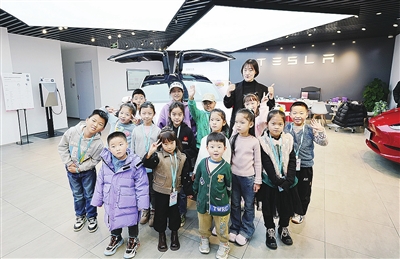 “我们都好奇极了,音乐响起,特斯拉真的跟着音乐跳起了舞。只见它的车窗上下滑动,后备厢缓缓升起,这时两边的车门也慢慢升起,有节奏地上下摆动起来,就像长了一双大大的翅膀,轻轻扇动着飞翔。”金门路小学的吴春杨兴奋地说,“我们都看呆了,忍不住欢呼起来,太精彩了,真是一次有趣而有意义的科技之行。”