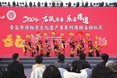 2月2日,由青岛市文化和旅游局、崂山区人民政府、青岛市崂山风景名胜区管理局主办的2024年非遗月系列活动启动仪式在国际会展中心城市会客厅举行。本次非遗月,以“龙跃齐鲁 乐享非遗”为主题,市文化和旅游局采取展演、展示相结合的方式,推出206项展览展示活动,线上线下活动齐开展,装点节日色彩,烘托新春氛围,真正让非遗走进街头巷尾、走进人民生活。
