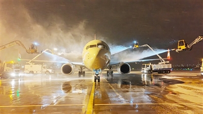 青岛机场提前谋划、统筹调度,与空管、机场、航司等单位协同联动,启动航班时刻动态调整机制,在安全的前提下,提效率保通畅,对航班只调时不调减,全力保障旅客出行,在两小时积雪达到5厘米情况下,所有航班均正常起飞,无因本场降雪原因取消航班,飞行区道面持续适航;公共区域道路保持畅通;候机楼秩序良好。