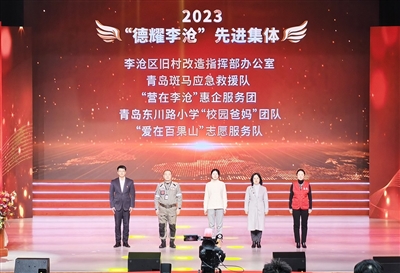 当天的“德耀李沧”环节,评选出的10名先进个人中,多人曾被《青岛晚报》报道:见义勇为的戴志磊,他勇救落水儿童的一幕,成为了对子女最好的言传身教。他的事迹引发全网关注,用正能量汇聚起3亿大流量,被网友们亲切地称为“青岛帅爸”;工作勤恳的公交车司机董述飞,曾经是川藏线运输兵,他在岗位上兢兢业业,“特色服务法”登上了央视《焦点访谈》,展现青岛职工风采;石化职工刘潇逸人称“献血达人”,6年献血超过3000毫升,还毫不犹豫捐献造血干细胞,挽救3岁女童生命;助人为乐的企业家秦玉波,秉承善念经营企业,胸怀大义关怀老人,他建起的“一念日善堂”,为社区70岁以上老人解决了用餐难题,还涌现出“包子姐”李倩这样的先进人物。
