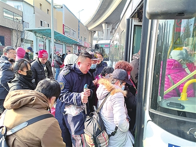 春节前,大集里格外热闹,人格外多。记者从李沧巴士公司了解到,李沧巴士公司9路、303路等多条线路途经李村大集。逢集时,会在6时30分到8时30分的时间段内加密班次,充分满足市民乘客赶集出行的旺盛需求。同时,组织“青岛巴士”志愿者在李村大集公交站开展便民服务。王刚便是“青岛巴士”志愿者中的一员。“王刚从2020年初开始参加李村大集的便民服务活动,到今天一集未落,算下来服务200多次。”李沧巴士第一分公司工作人员告诉记者。