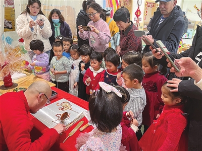 2月5日上午,记者在李沧区万达广场的非遗手造市集上,非遗传承人和民间艺人展示了剪纸、吹糖、糖画等精湛技艺,十余种非遗手造体验展销项目吸引了前来采购年货的市民。