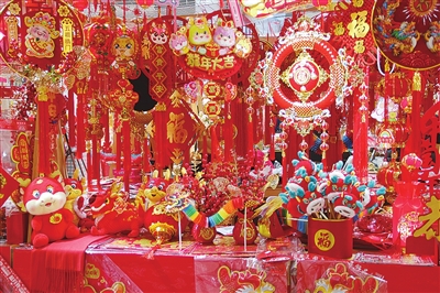 2月6日,在崂山区金狮广场的新年市集上,龙形灯笼、龙形创意福字、龙形手工木制品、手工舞龙,从十几元到上百元的龙年装饰品琳琅满目,红红火火,非常吸睛。一处摊位吸引了记者的眼球,摊位上摆着琳琅满目的新年摆台、福字、对联、卷轴等创意文字产品。家住市南区的沐槿是创意福字的摊主,她边说边在一张红色的字画纸上用行书写下福字,与传统福字不一样的是,这个字的右边,加了一个可爱的小龙头模样,为新年增加了一些快乐元素。