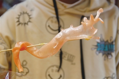 “吹气,一停,再吹,再一停。”现场一位小学生在青岛市非遗传承人吹糖艺人周明鸣的口令和捏制下,吹制了一只大公鸡。“这是需要两个人配合完成的,捏是一门手艺,边吹边捏造型,吹气要均匀,要不然就吹起大泡了。”正说着,有市民在现场说:“吹一条龙吧。”只见吹糖艺人周明鸣先取了一块熬好冷却的麦芽糖,放在手心,用两手掐、捏、拽,让糖的温度更均匀。然后他深吸一口气,从龙尾巴吹起,近一分钟的时间,一条高15厘米、长20厘米的糖龙就吹好了。