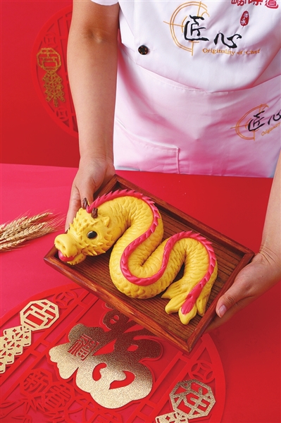 “过年必须得做大饽饽,喜庆!”胶州臻好花饽饽工作坊的董姐告诉记者,考虑到即将迎来龙年,她们在大饽饽上加上了一条祥云龙,制成的龙饽饽产品在春节前几乎卖断货。