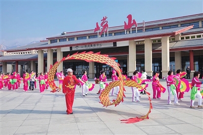新年伊始,不少游客选择和家人一起爬崂山,参与登高祈福之旅。游客欣赏崂山美景,享受健身运动之乐,还亲身体验了红旗招展、锣鼓喧天的民俗盛宴。正月初一至初六,在崂山大河东游客服务中心,来自沙子口街道30多个村的村民组成13支秧歌队,每天进行传统锣鼓表演,舞龙、跑驴等节目。