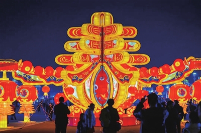 在金沙滩啤酒城新春灯会上,各式花灯交相辉映,装点出一个“火树银花”的绚烂世界。龙头造型的花灯栩栩如生,年味便是从“龙门”开始。在星光大道两侧,一组组精美的彩灯美轮美奂,让游客流连忘返。据悉,这些彩灯均来自四川自贡。自贡灯会已有近千年历史,是国家非物质文化遗产,有“天下第一灯”的美称。金沙滩啤酒城的每一盏花灯都寓意吉祥,寄托了对生活的美好期待和祝愿。假期期间,最吸引人的是非遗打铁花表演,每次表演,铁花瞬间化作万千火星在夜空绽放,如烟火盛开,似天女散花。金沙滩啤酒城还邀请了知名DMC雷公电母驻场演出,同时有燥热乐队、爱妃乐团、仰山乐队等青岛本土知名乐队驻场表演,让潮流音乐引爆这个春节。