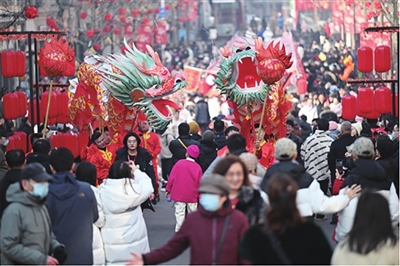 此外,春节期间每天多个时段的舞龙、花灯巡游贯穿历史城区,打造浓厚的市井民俗风,让市民、游客感受老青岛春节的别样魅力。