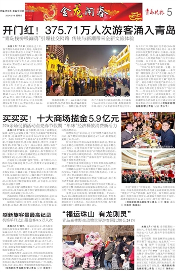 餐饮企业实现客流、销售额双增长。TSINGTAO 1903旗舰店推出年夜饭预订促销活动,青岛春和楼借着店面装修升级重新开业的契机,在春节假期期间推出了众多活动。乔记渔庄春节不打烊,春节期间顾客盈门,接待量同比增长15%。