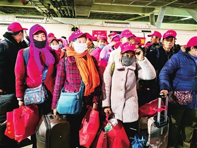 伴随着细碎的春雪,专列缓缓驶入车站,春寒料峭的站台,车厢内外却洋溢着温暖,市人社部门的工作人员连续忙碌4个多小时,为的就是给定西老乡们营造喜庆温馨的氛围,让他们感受家的暖意。不到半小时,500多名“人力大军”就有序地离开车站,输送至各区市和用人单位。