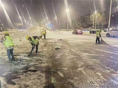 本报2月21日讯 为减少降雪对道路交通、市民生产生活产生的不利影响,崂山区城市管理局联合多部门,全力做好清雪物资储备及道路清雪准备,扎实有效开展清雪除冰工作。