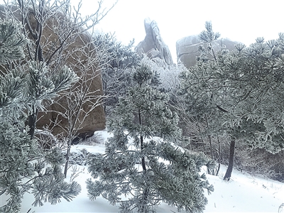 春雪覆盖下,山峦银装素裹,树梢“银花”绽放,春景与白雪交织在一起分外妖娆,别具韵味。(观海新闻/青岛晚报/掌上青岛 首席记者 张译心)