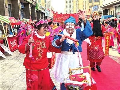 本报2月23日讯 2月23日上午,李沧区九水东路社区商业街洋溢着浓厚的节日氛围。为迎接元宵佳节,第三十届“李沧之春”民俗展演九水街道分会场——“寻觅国潮元宵·遇见传统文化”元宵喜乐游园会在此举行。