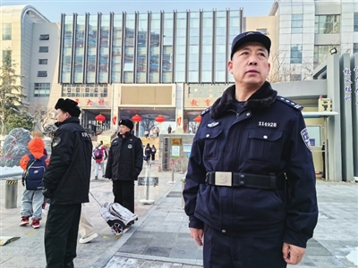 25日早晨7时许,在崂山区第二实验小学,埠东治安派出所民警蒋玉好踏着积雪开始了巡查。他先是绕着学校走了一圈,细细查看了围墙和护栏,随后来到学校的监控室,在高处查看了整个校园情况。他看到每个执勤点都有人在巡查。“我们会定期对学校的消防安全设施进行检查,检查安全出口,检查消防车环形通道是否畅通。”蒋玉好告诉记者,派出所每个月定期对校园安保力量进行防暴处突培训,教校园保安正确使用钢叉、盾牌等器械,配合民警的下一步工作。
