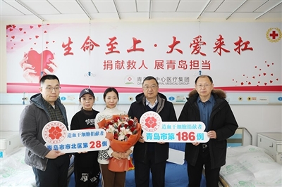本报2月27日讯 26日下午,青岛市第186例造血干细胞捐献者史慧在青岛市中心医院完成造血干细胞捐献采集,去挽救一名血液病患者的生命。史慧也成为青岛市第186例造血干细胞捐献者。