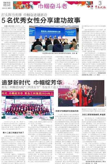本报3月8日讯 新征程上,每一位妇女都是主角,都享有人生出彩的机会。8日下午,“打头阵 当先锋 巾帼奋进建新功”青岛市先进典型代表媒体见面会在青岛国际新闻中心举行。谢丹等5名来自不同行业领域的优秀女性代表分享了自己如何拼搏进取成为人生“大女主”、建功新时代的故事,展现了“半边天”的卓然风采。