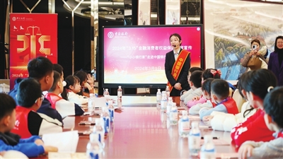 “金融消保在身边,保障权益防风险”,银行工作人员带大家参观了大堂的多种智能设备,教大家如何办理银行业务,以及关注金融安全、防范新型诈骗等金融科普知识。“我们学习了如何操作使用自助设备,这些感觉离我生活很远的事情一下子都拉到了眼前,原来我们的钱都是通过这个小小的柜机在银行里进行保管。”郐清然在这次体验式学习中,了解了理财的意义,“虽然我们还很小,但是也要学会管理自己的小小压岁钱,要有健康的消费和节约意识,以及金融安全意识。”
