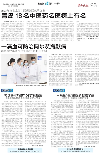 本报3月14日讯 近日,山东省卫生健康委员会、山东省人力资源和社会保障厅发布了《2023年度山东省中医药名医名单》。青岛市共有18名中医药名医榜上有名,包括1名山东省名老中医(药)专家,6名山东省名中医(药)专家和11名山东省基层名中医(药)专家。