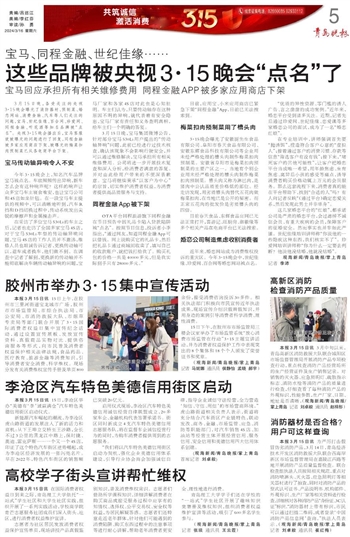3月15日晚,备受关注的央视3·15晚会曝光了消防器材、预制菜、婚恋网站、消费金融、汽车等人们关注的问题,宝马、世纪佳缘、百合网、珍爱网、同程金融、听花酒等知名品牌被“点名”。央视3·15晚会播出后,宝马客服就被曝光的问题进行了回复,同程金融被多家应用商店下架、被曝光的梅菜扣肉预制菜已从各电商平台下架。
