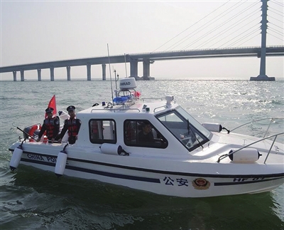 虽然天气很好,但海上依然有风浪。巡逻艇稍一加速就开始拍打海面,颠簸加大,记者的身体也开始在座位上起起伏伏。但记者发现,民警们早已适应了这种颠簸。所长毕磊走出驾驶舱,开始扫视海边的情况,用对讲机通知岸边的同事前去查看。