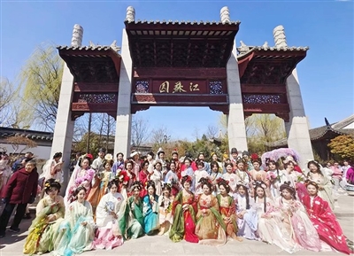 汉服、马面裙……近年来,各大景点内“国潮”兴起,带来了一波又一波的流量。3月24日是农历二月十五,也是中国的传统节日“花朝节”。在杭州西溪湿地,在济南大明湖畔,都举办了相关活动。在青岛市李沧区东部的百果山脚下的世博园景区,“花朝节”也拉开序幕:众多汉服爱好者应约而至,彰显着中国人刻在骨子里的浪漫。在古色古香的中华园,随处可见头戴簪花、身着汉服的达人赏花游园,现场游客也被热烈的气氛感染,纷纷参与其中,共赴一场浪漫的春日之约。