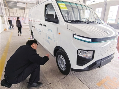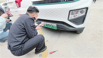 3月27日上午9时许,在城阳交警车管所内,市民乔女士向前台递交了注册登记的相关材料。乔女士是青岛一家运输企业的工作人员,当天,她要为企业新购置的两辆新能源面包车挂牌。
