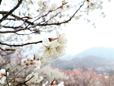 随后,记者走进大崂樱桃谷。漫山遍野的樱桃花随着海拔的上升,层层叠叠成片簇拥,好像给青山蒙上了一层似粉似白的薄纱,颇有梦幻之美。上山的路很多,有能饱览山中多数美景的主路,也有深入其中一处的辅路,前来赏花的游客可以随意选择,在不同的位置饱览樱桃花的美丽。沿着山间小路缓缓前行,除了占据视野的大片花海,身边触手可及的花也多了起来,不禁令人驻足细细观赏樱桃花的洁白与小巧。不少游客拿起手机,不断拍下喜爱的花朵,还有游客在樱桃花林留影,定格赏花一刻。