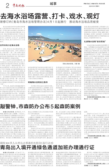 海水浴场是我市得天独厚的资源禀赋,也是展现城市形象的亮丽名片。为进一步规范海水浴场管理,更好服务市民游客,引领海滨旅游高质量发展,市司法局、市城市管理局组织修订了《青岛市海水浴场管理办法》,《办法》对海水浴场的设立、运营服务、安全生产、监督管理等作出了规定,将于2024年4月1日起施行。
