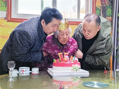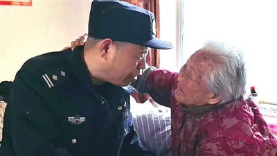 3月29日上午,记者跟随青岛市公安局海岸警察支队前海派出所民警周宝忠,提着牛奶和桃酥,来到93岁的孙建勤老太太家中。老人年事已高,听力下降,这些年戴上了助听器。“娘,儿子来看你了!”周宝忠和老人一见面,立刻大声喊道。