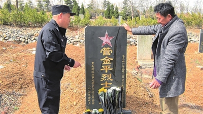 “管金平,你放心吧,老娘有我们两个照顾。”烈士的弟弟管金安擦拭着哥哥的墓碑,眼含热泪。