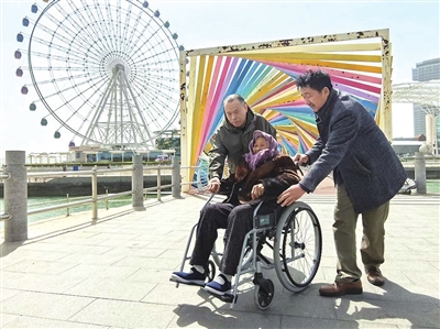 当天上午10时许,周宝忠为老人找来轮椅,用车载着老人到丁家河车站,推着她登上了地铁1号线,在王家港车站下车。两个地铁站为老人开通绿色通道,准备了登车挡板,全程护送老人上下车和进出站。随后,周宝忠和管金安带着老人来到了海上嘉年华附近的海滨栈道。