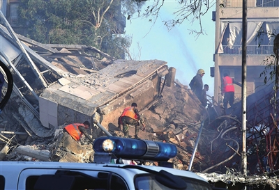 遇袭建筑紧邻伊朗驻叙大使馆主楼。互联网流传的图片显示,遇袭建筑被完全炸毁,现场冒起浓烟。
