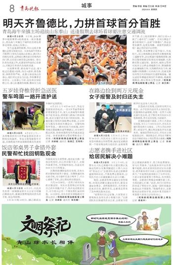 本报4月3日讯 3月31日上午10时30分许,市民刘女士到市北公安分局登州路派出所报警称,她在延安路捡到一个装有现金的白色信封,在原地等候多时也没有人来认领。