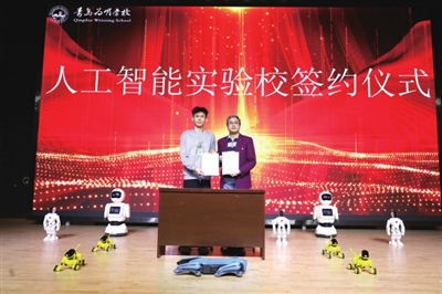 开发学生创新思维潜能,提高动手动脑能力,让学生在科技实践活动中感受创新的魅力,推动校园科技活动的蓬勃发展。闭幕式上,青岛为明学校签约成为清华大学人工智能研究院智能机器人研究中心“人工智能教育实验学校”。此次签约,加速了学校创新教育的发展引擎,为师生提供了更加优质的教育资源和实践环境。