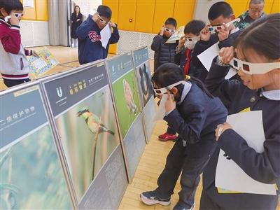 “学校科技馆既能让我们学到课堂上学不到的知识,又能激发大家探索科学奥秘的信心。”在青岛为明学校小学部体育馆内,青岛科技馆工作人员为学生们分发3D眼镜,讲解观看国家二级保护动物展板,“哇,太漂亮了!”“看黑熊在动,红隼栩栩如生。”学生们在一声声的赞叹中,学习科普知识,感受科技魅力。
