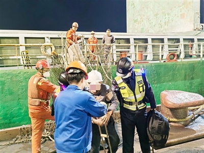 当天下午,董家口边检站执勤民警接到船舶代理电话,伯利兹籍的“德盛惠英”轮当日下午6时许将靠泊董家口港D4泊位,轮船上有一名中国籍机工在操作时不慎将左脚扭伤,急需下船就医。董家口边检站立即启动紧急救助预案,执勤民警第一时间将受伤船员搀扶下船,为其开通绿色通道,高效快速地为船员办理入境手续,为他入境就医争取了宝贵的时间。(观海新闻/青岛晚报/掌上青岛 记者 刘卓毅 通讯员 李明珠)