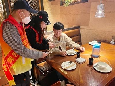 一些位于景区、商圈的街道也积极行动起来,倡树新时代美德及健康生活方式。这个假期,市南区湛山街道开展了文明餐桌主题活动。用餐高峰期,街道的新时代文明实践志愿者们走进万象城,向餐饮店工作人员及顾客分发文明餐桌倡议书,宣传文明用餐知识,并倡导消费者合理消费、按需点餐,推动形成厉行节约的良好氛围。