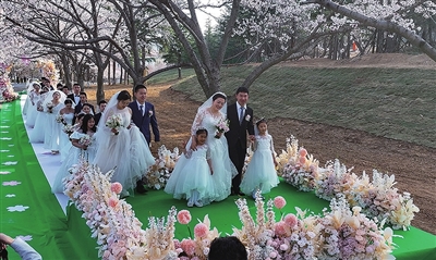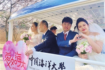 4月5日,“爱如海大”中国海洋大学2024校友集体婚礼在崂山校区举行。100对校友新人以爱为名,重聚山海间,共同欢庆海大建校100周年。