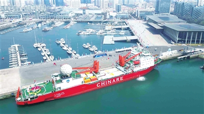 10日,完成中国第40次南极考察任务的“雪龙”号停靠青岛,自然资源部与山东省人民政府在青岛奥帆基地码头举行欢迎活动。之后将举办为期3天的开放日,供社会公众参观。