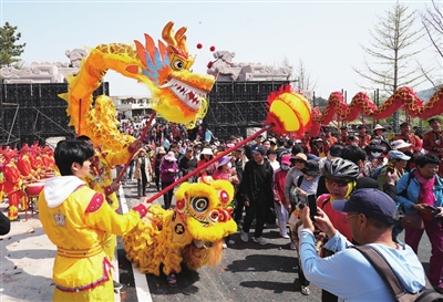 ~~~开放首日万余名游客登山体验“二龙舞春”