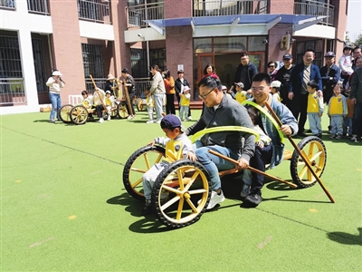 本报4月16日讯 16日上午,市北区海安幼儿园阳光园区举行户外游乐场启动仪式暨亲子游玩打卡活动。幼儿园小班孩子和家长们沉浸式体验、感受园区内游乐设备。