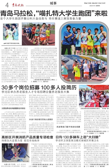 4月17日上午,李沧区民政局联合多家单位,在李村文化公园举办了养老服务人才专场招聘会暨养老服务大集。当天,30多个护理员、医护、院长助理等养老服务岗位,吸引了不少求职者的目光,100多人向养老机构投递了简历。
